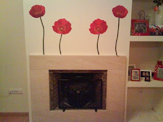 Também comprei uns girassóis mas ainda não têm sítio definido. Adoro papoilas e girassóis. Como a sala está com tons de preto e vermelho as papoilas ficaram espectaculares na lareira.