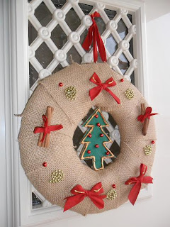 Este ano queria uma grinalda nova para enfeitar a porta da entrada. As que vi nas lojas eram bem giras, mas demasiado caras para a minha carteira. Então pensei fazê-la eu própria com materiais que tinha em casa.